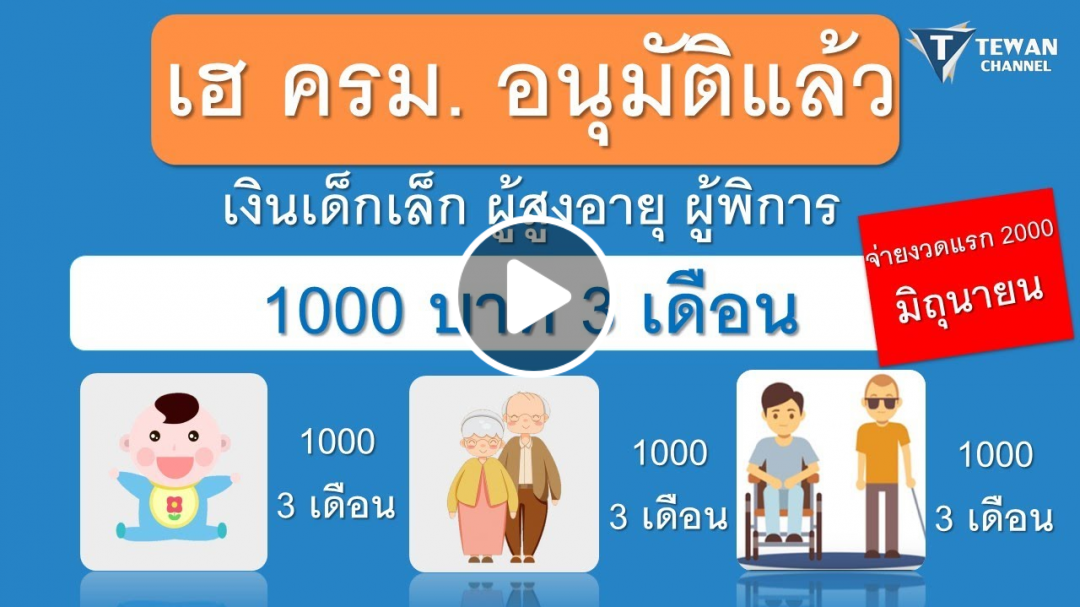 เฮ! ครม. อนุมัติแล้วเงินเด็กแรกเกิด ผู้สูงอายุ ผู้พิการ1000 บาท 3 เดือนจ่ายงวดแรก 2000บ. มิถุนายน63 #เงินเยียวยาเด็กแรกเกิดล่าสุด #เงินเยียวยาผู้สูงอาเฮ! ครม. อนุมัติแล้วเงินเด็กแรกเกิด ผู้สูงอายุ ผู้พิการ1000 บาท 3 เดือนจ่ายงวดแรก 2000บ. มิถุนายน63 #เงินเยียวยาเด็กแรกเกิดล่าสุด #เงินเยียวยาผู้สูงอาเฮ! ครม. อนุมัติแล้วเงินเด็กแรกเกิด ผู้สูงอายุ ผู้พิการ1000 บาท 3 เดือนจ่ายงวดแรก 2000บ. มิถุนายน63 #เงินเยียวยาเด็กแรกเกิดล่าสุด #เงินเยียวยาผู้สูงอา